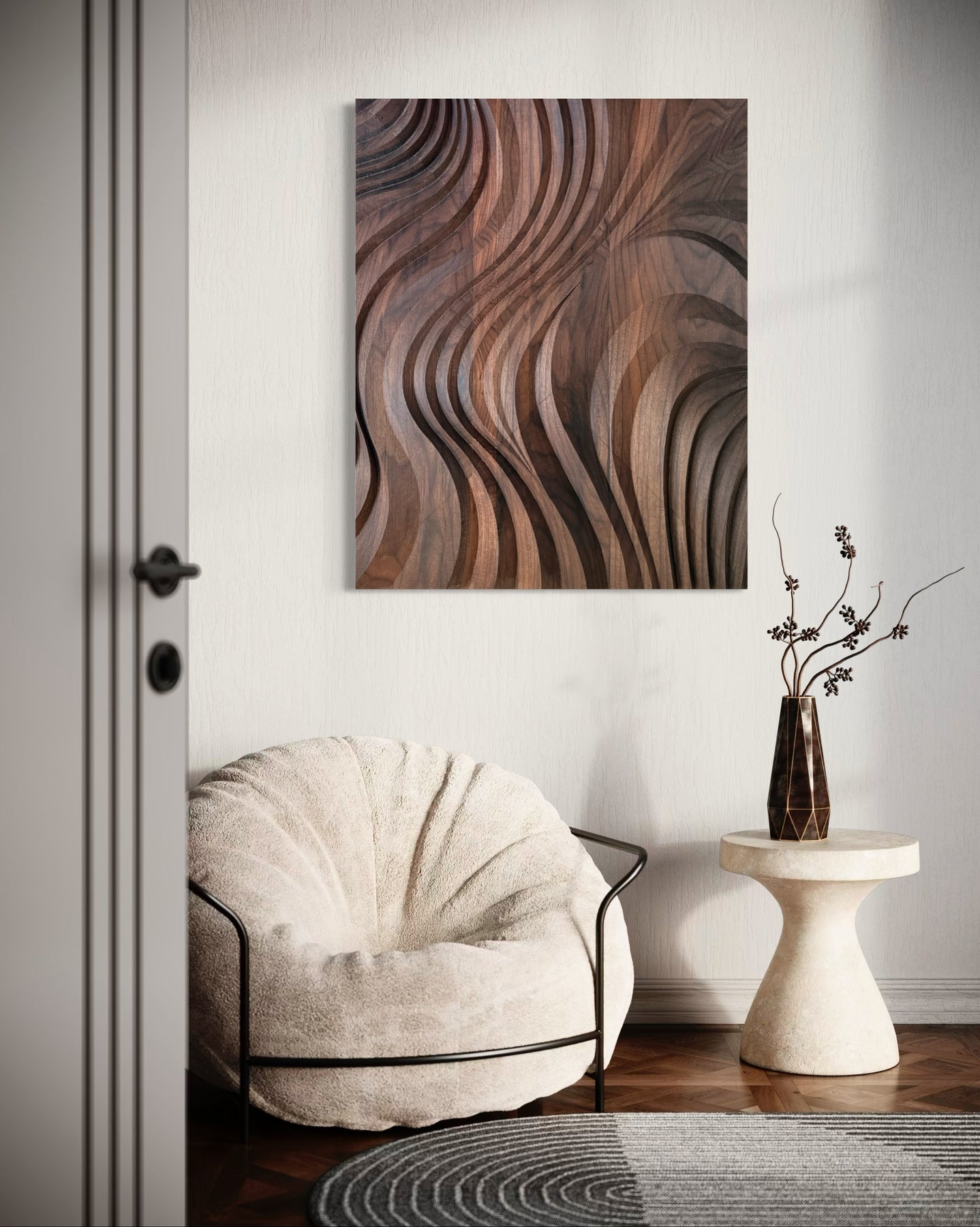 Kunst aan de muur, wallart, woodart, wandpanelen, muurdecoratie, wandpaneel hout, wanddecoratie, luxe interieur, luxe inrichting, kantoor inrichting, zakelijke inrichting, bedrijfspanden inrichten, woonkamer inspiratie, kunst kopen, houten wandpanelen muur, art, artwork