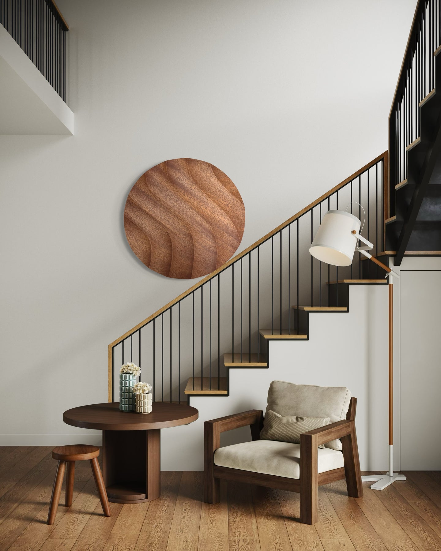 The way the waves crash and roll creates a mesmerizing dance that connects me to nature in a profound way. Inspired by this beautiful movement, I created a round wavy wood art design that captures the essence of the waves.