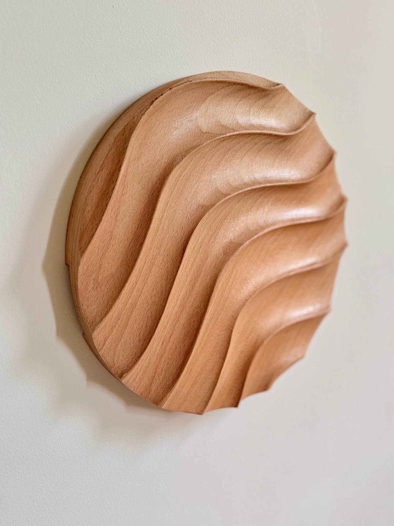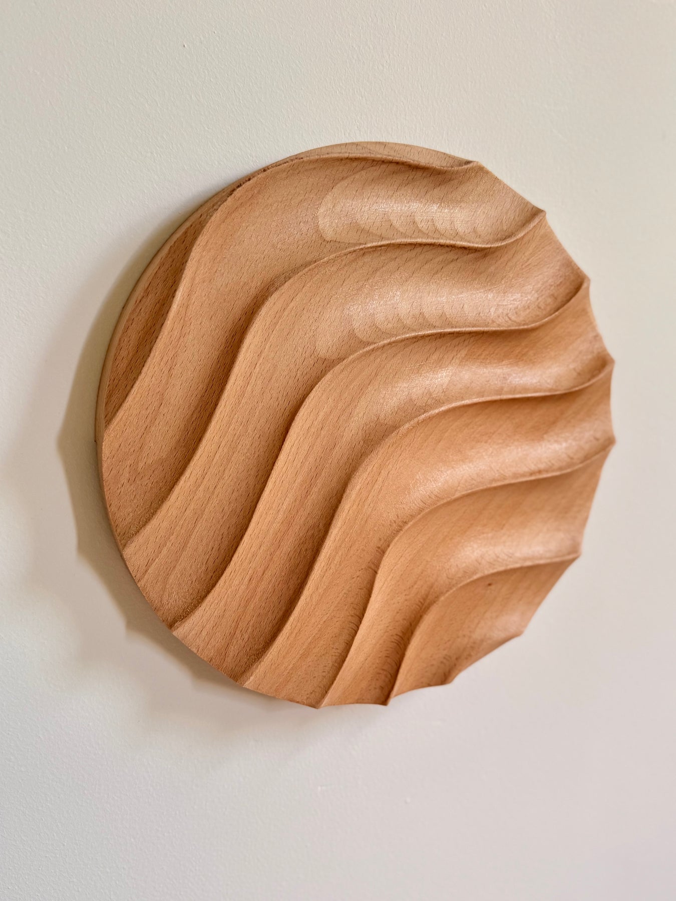 The way the waves crash and roll creates a mesmerizing dance that connects me to nature in a profound way. Inspired by this beautiful movement, I created a round wavy wood art design that captures the essence of the waves.